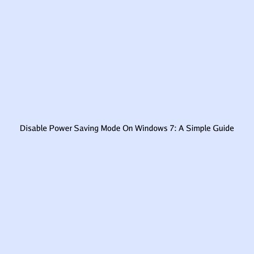 Disabling Power Saving Mode on Windows 7: A Simple Guide