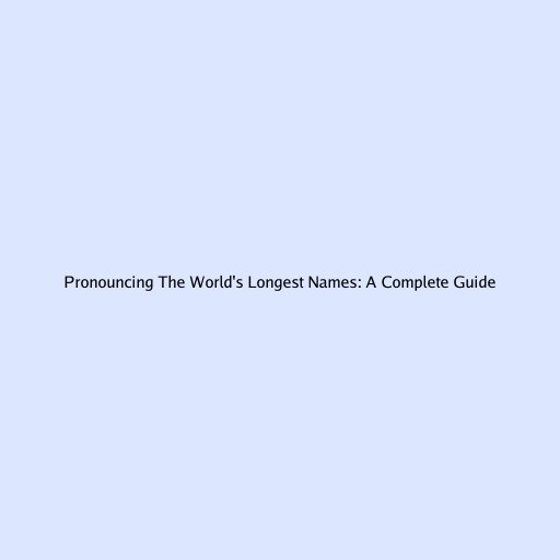 Pronouncing the World’s Longest Names: A Complete Guide